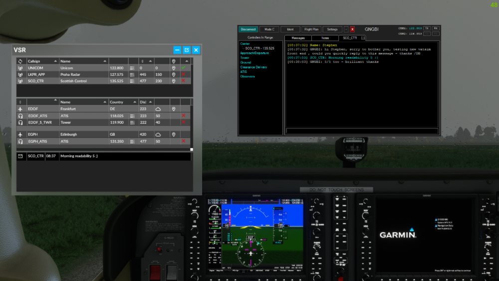 David Black Posted April 3, 2022 at 07:58 PM Posted April 3, 2022 at 07:58 PM Hi all, I have developed a VS radio toolbar app for FS 2020. It uses the various VATSIM feeds to present the nearby controllers, maps, distance and range info. It also allows you to set your Comm radios to the correct frequencies. I am going to need a few testers in the coming weeks , if you are interested let me know by return. Here is a short promo video , comments welcome. 2 2 Link to comment Share on other sites More sharing options...